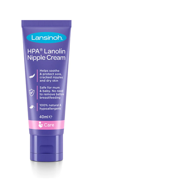 Lansinoh HPA Lanolin Nipple Cream is a 40ml cream made of 100% natural, ultra-purified lanolin that provides soothing relief for sore, dry, or cracked nipples during breastfeeding. It is safe for babies, so there is no need to wipe it off before feeding and can also be used for other skin irritations like chapped lips or dry skin patches. To use, apply a pea-sized amount to the affected area after each feeding or as needed, after washing hands.